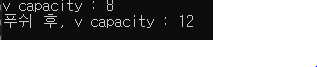 보통 1.5배 크기로 재할당 되며, 그렇기때문에 위 코드에서 푸쉬 후의 capacity는 8 * 1.5인 12가 재할당되었다.