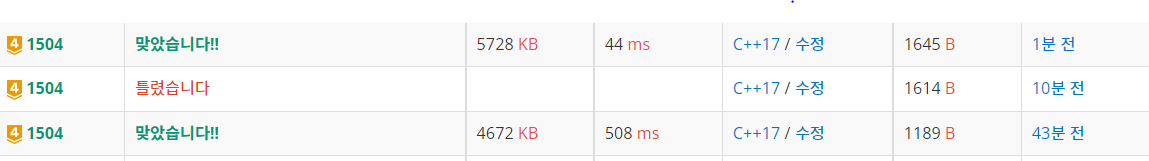 508ms가 플로이드와샬, 44ms가 다익스트라로 푼 결과이다.