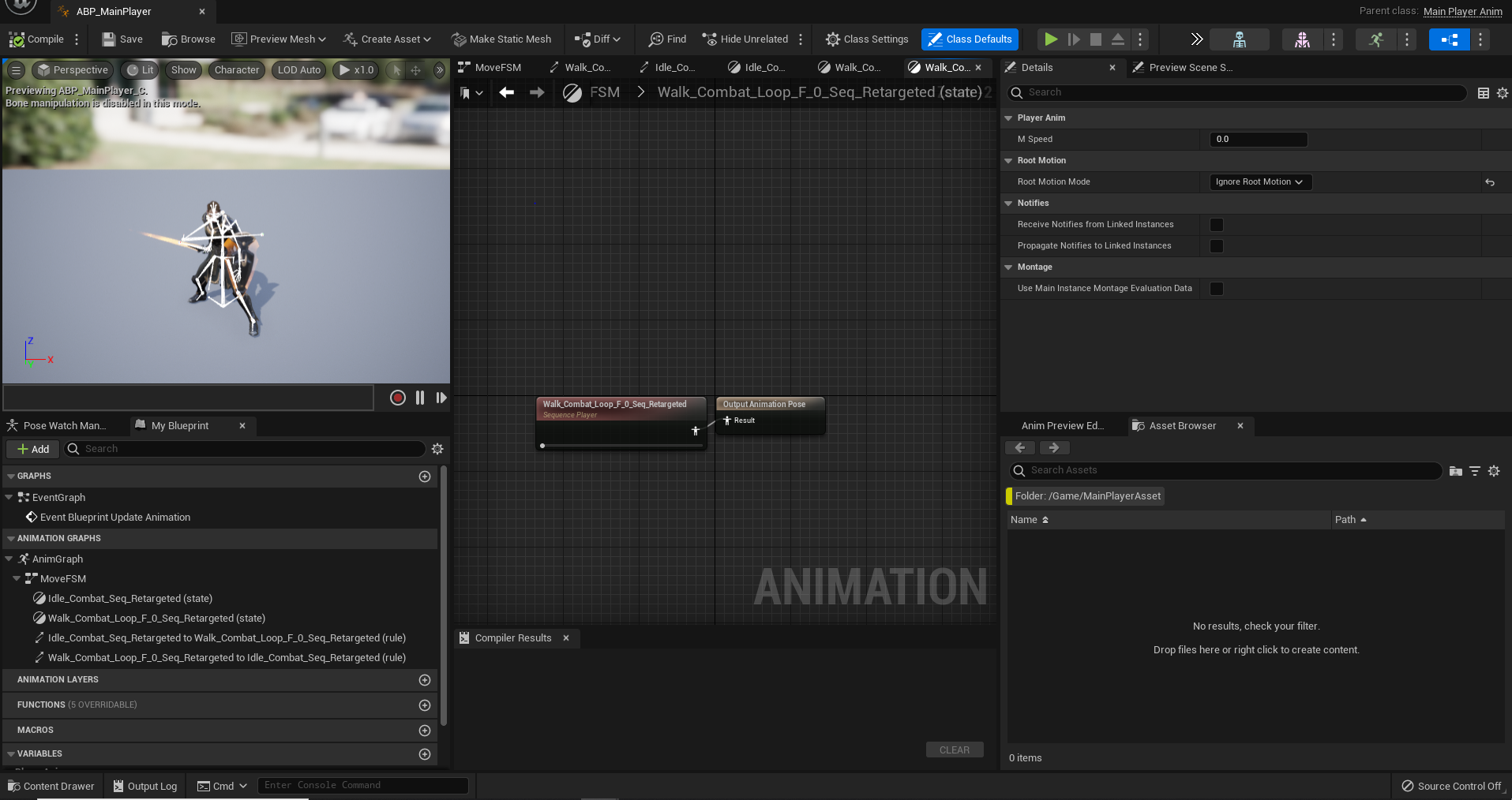 그럴 경우 먼저 메인캐릭터와 연결된 애니메이션 블루프린트파일을 연다.