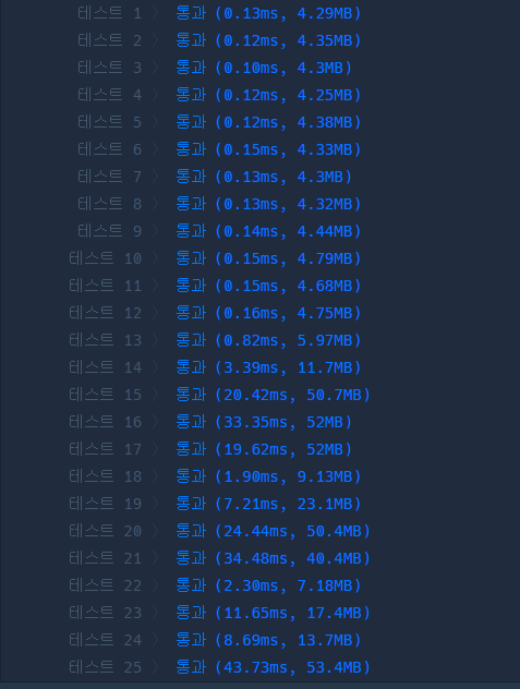 다른 풀이글들과 비교해보더라도 꽤 괜찮은 수행속도가 나온 것 같다.