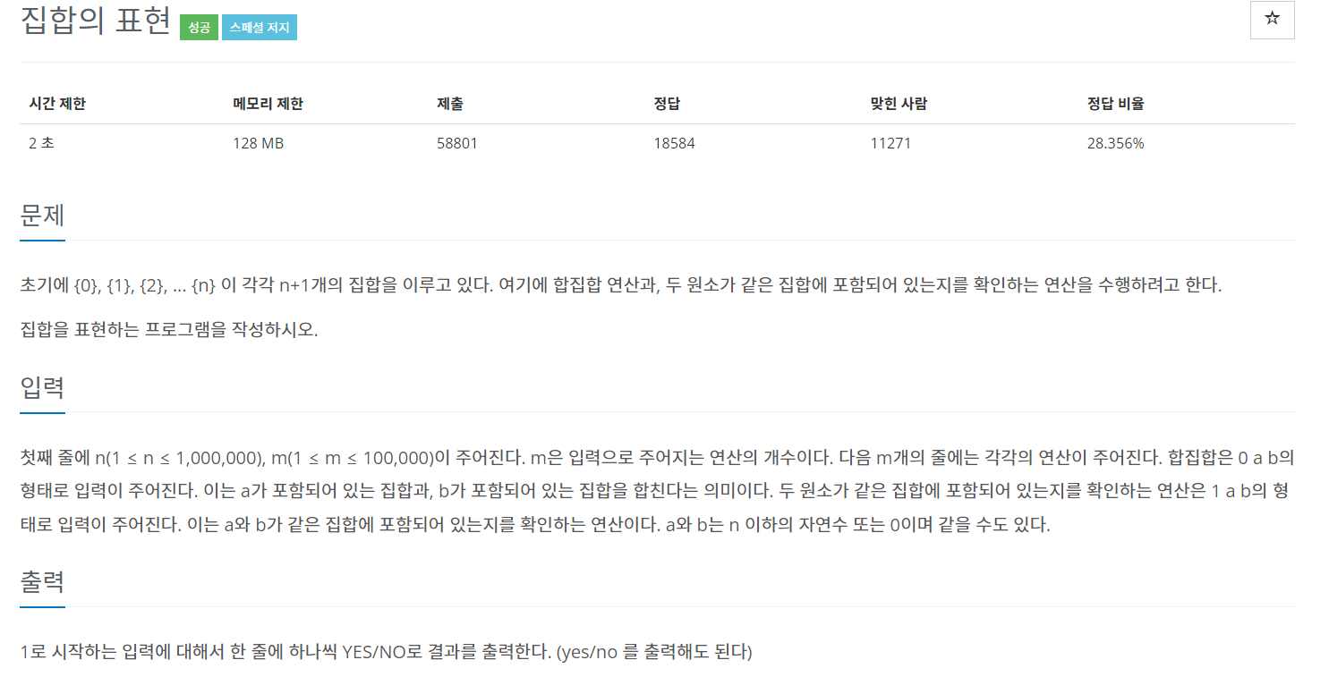 [Algorithm]Baekjoon 1717번 :: 집합의 표현 (유니온파인드 기본문제) 본문