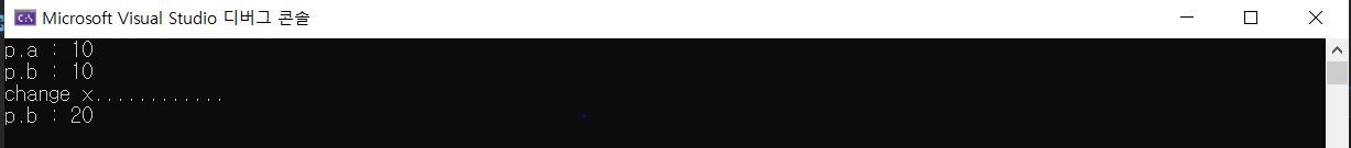 에러없이 잘 빌드되는것도 확인되며, 메인함수에서 x의값을 변경한다음 p.b의 값을 찍었을 때 마찬가지로 값이 변경된 걸 로 보아 참조형변수도 제역할을 잘 수행한 것을 확인 할 수 있다.