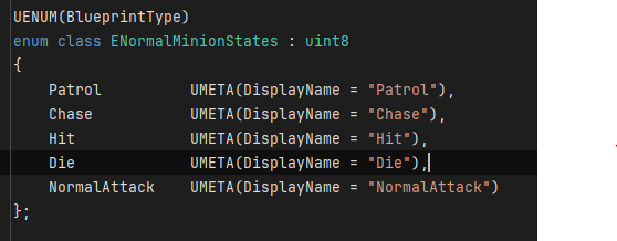 이런 enum class의 상태들이 있을 때, 이것들의 순서를 변경했다면 반드시 행동트리에서도 관련된것들을 다시 체크해줘야 한다.