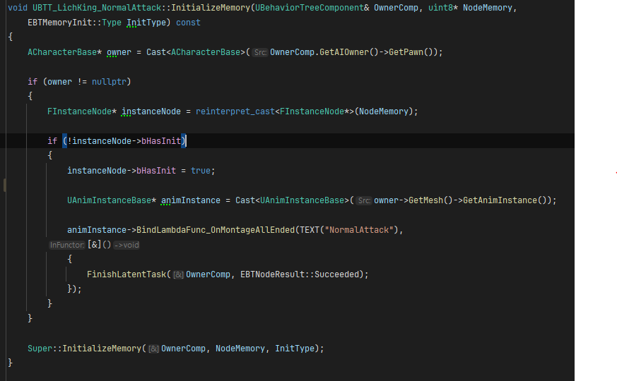 참고로 노드를 몬스터마다 뭔가 다르게 동작시켜야 해야 할 경우, 즉 몬스터마다 노드의 멤버변수를 가져야 할 경우 InitializeMemory를 사용하면 노드자체를 인스턴스화 안시켜도 가능하다.